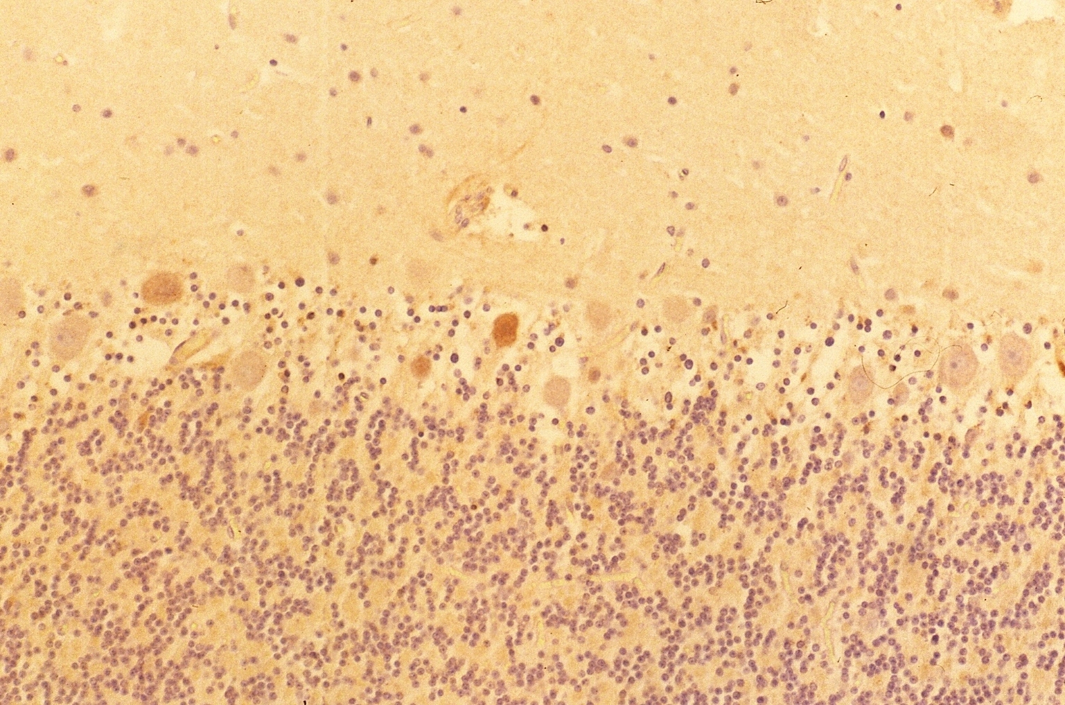 Fig. 2 Double immunofluorescent staining in human cerebellum.